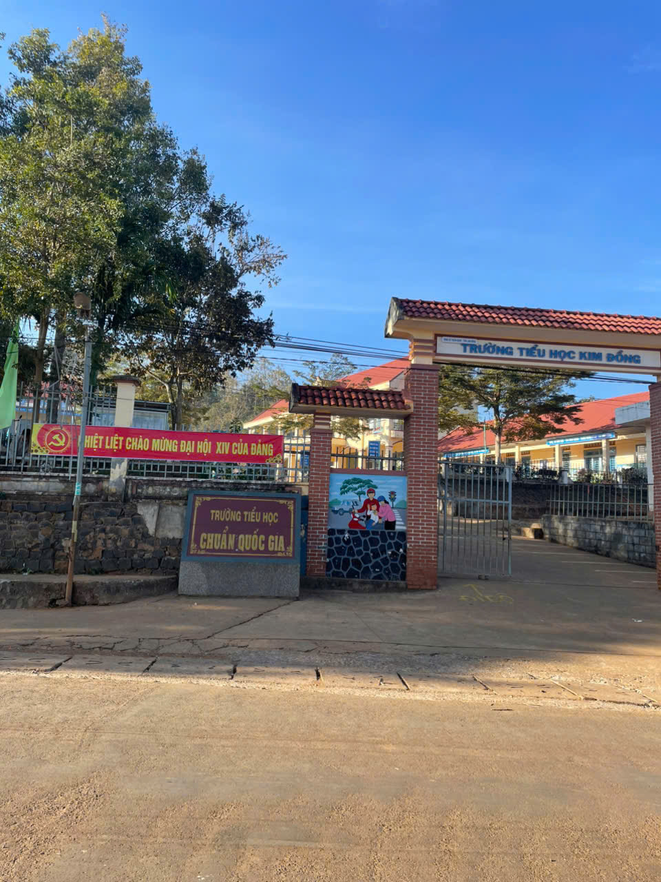 Trường Tiểu học Kim Đồng tổ chức lao động, vệ sinh, trang hoàng khuôn viên trường, treo cờ, băng rôn…và tuyên truyền tới học sinh, phụ huynh về Đại hội lần thứ XIV của Đảng.