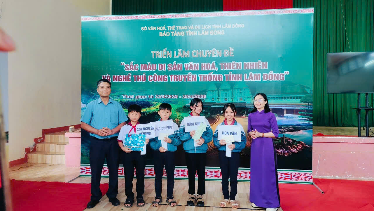 Ngày 23/4/2026, thầy và trò Trường Tiểu học Kim Đồng, xã Thuận Hạnh tham dự triển lãm chuyên đề “Sắc màu Di sản văn hóa, thiên nhiên và nghề thủ công truyền thống tỉnh Lâm Đồng” do Bảo tàng tỉnh Lâm Đồng tổ chức tại Trường THCS Nguyễn Du.