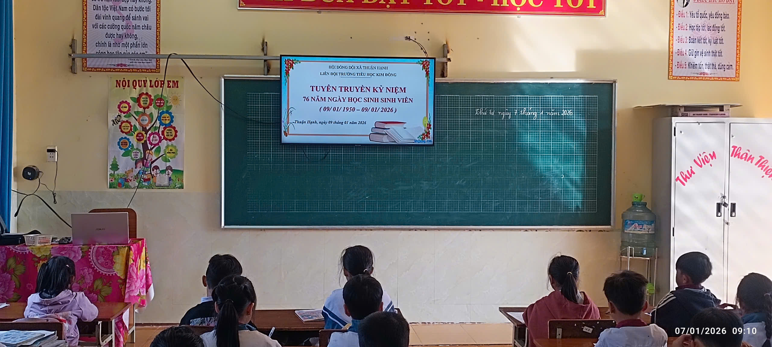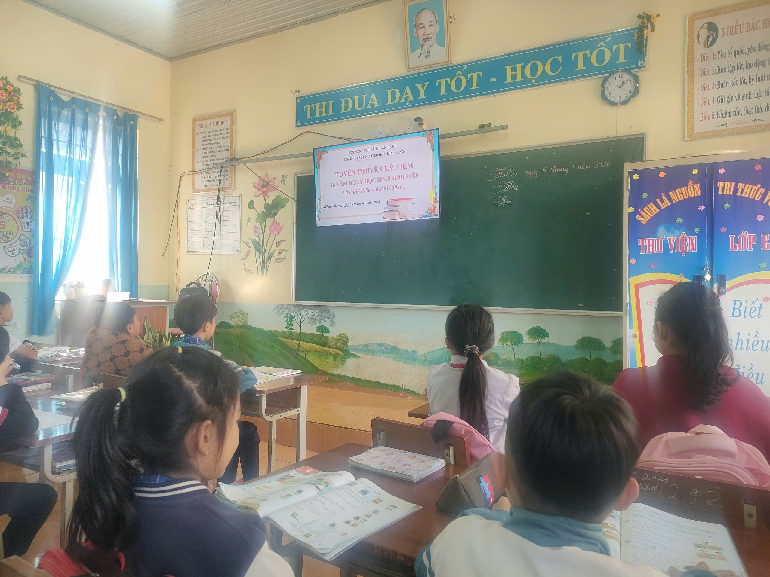 Thông qua tiết sinh hoạt dưới cờ và các tiết sinh hoạt lớp Liên đội trường Tiểu học Kim Đồng tổ chức tuyên truyền, kỷ niệm 76 năm Ngày học sinh, sinh viên ( 09/01/1950- 09/01/2026 ).